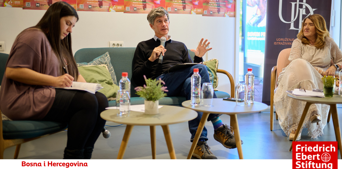 Razgovoru panelista prethodilo je predavanje historičara i novinara Berta Hoppea, a tokom događaja predstavljena je i publikacija „Kazani: Suđenja, (re)ekshumacije, memorijalizacija“, objavljena ove godine u izdanju UDIK-a uz podršku Pro Peace BiH.